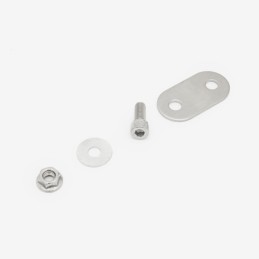 The exhaust fitting or fixing kit in a motorcycle includes all necessary hardware, such as bolts, gaskets, and clamps, for securely mounting and sealing the exhaust system components to the bike.