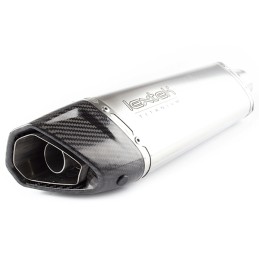 La combinación de colector en titanio y silencioso en acero inoxidable permite obtener un sistema de escape eficiente, resistente y con un sonido deportivo marcado.