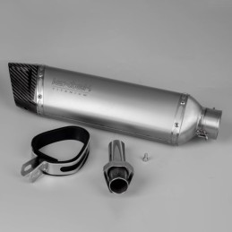 The motorcycle exhaust silencer, also known as a muffler, is a critical component designed to reduce the noise generated by the engine's exhaust gases. It achieves this by channeling the exhaust flow through a series of internal baffles, perforated tubes, and sound-absorbing materials. These features work together to dampen the noise produced during combustion, helping to meet noise regulations and provide a quieter riding experience. Additionally, the exhaust silencer helps to optimize exhaust flow, contributing to the overall performance and efficiency of the engine by ensuring smooth expulsion of exhaust gases. Its design also often includes provisions for durability and resistance to high temperatures, making it an essential part of the motorcycle's exhaust system.